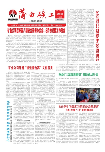 第一版 矿业公司召开第八期安全环保办公会、8月份党委工作例会